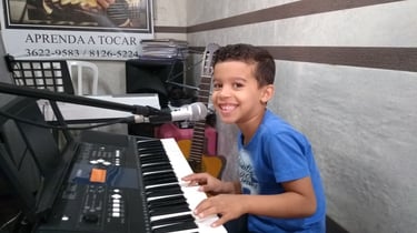 Multi-instrumentista: Aulas de Piano, Violão, Guitarra, Baixo, Bateria e Canto.